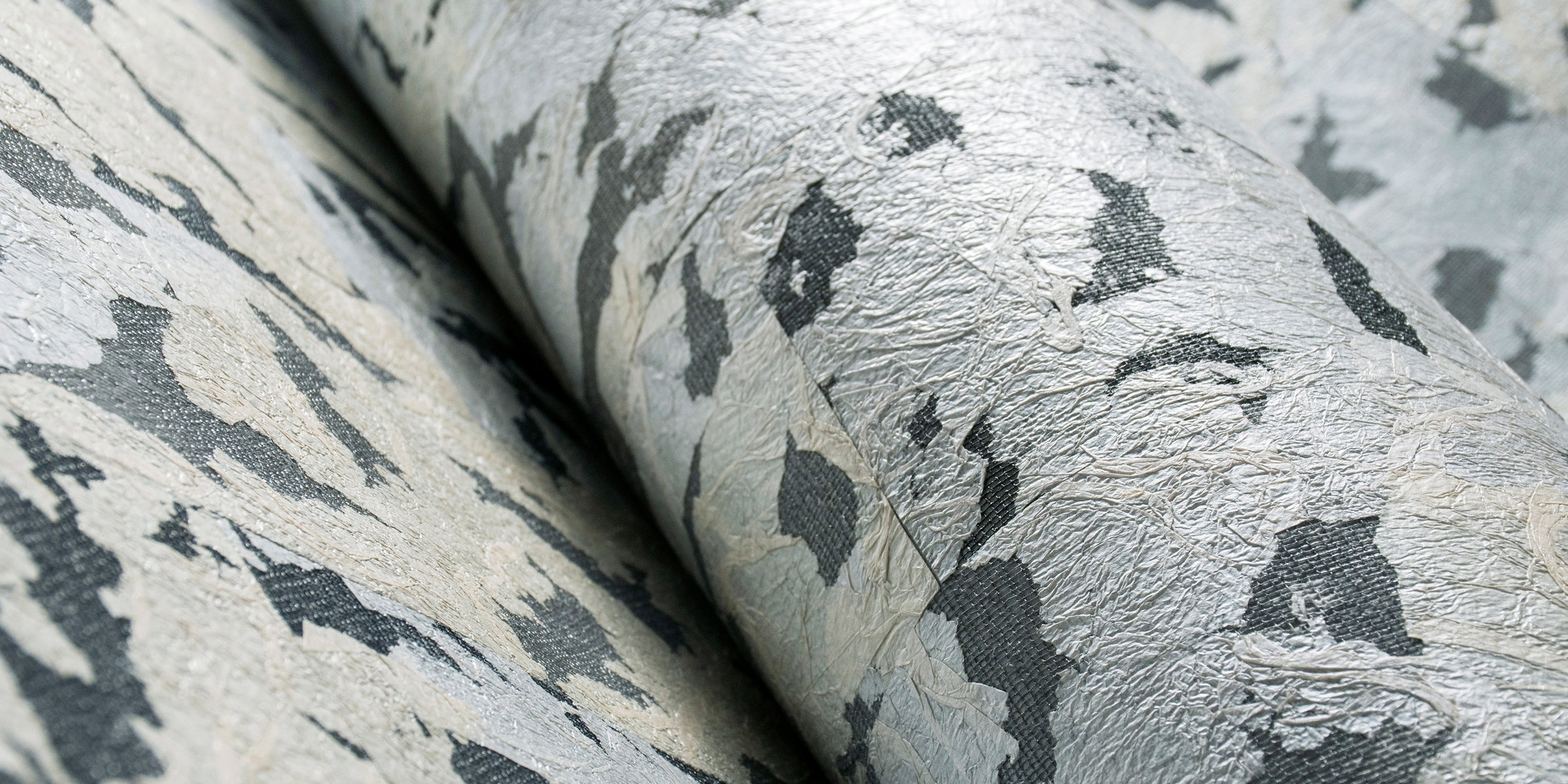 Wallcovering with gauze and Japanese paper, representing the shiny coat of the Armoured Boar. The upper part of its body was covered in black and golden scales, which gave it an ornamental appearance.