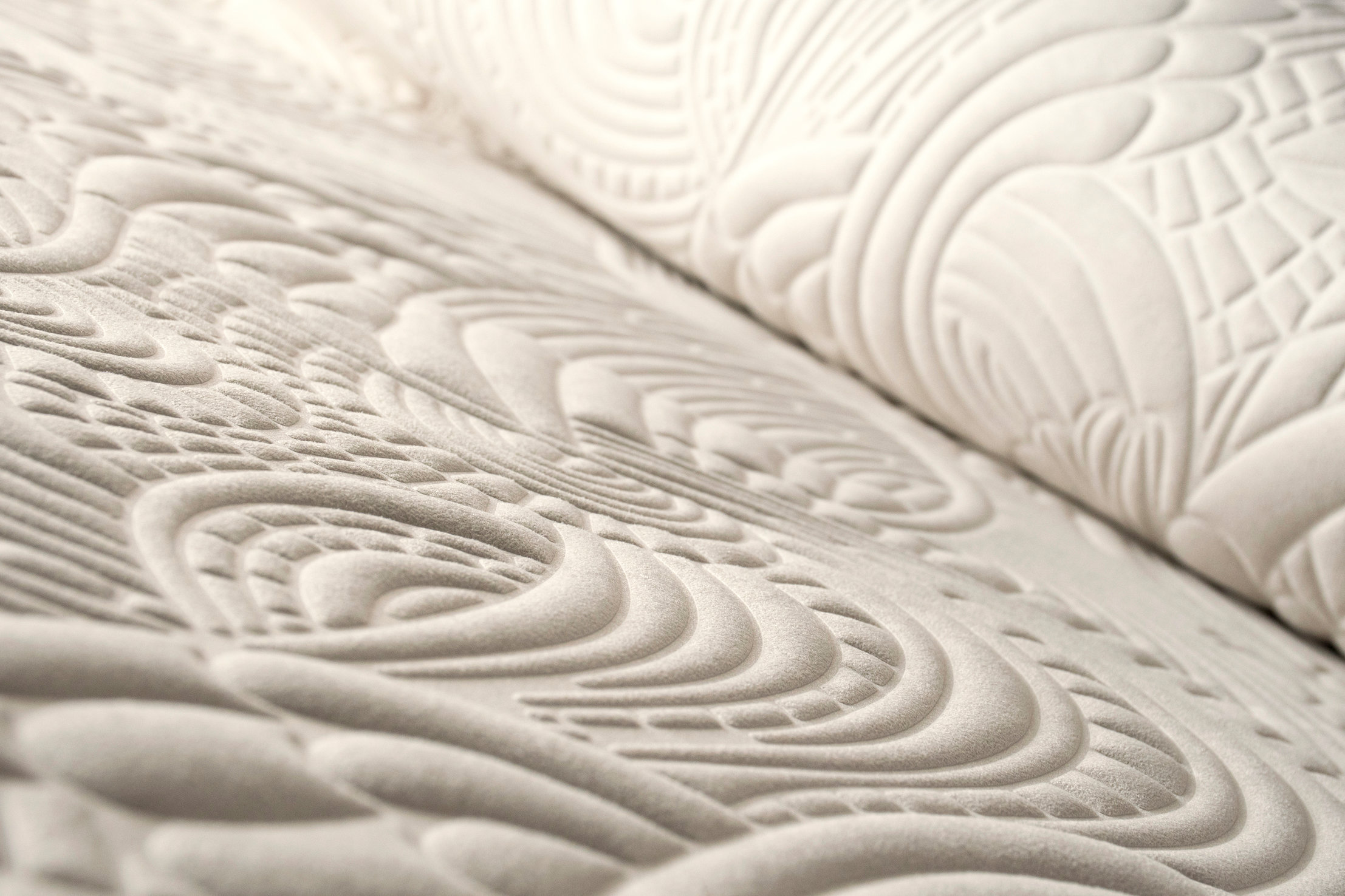 3D wallcovering with a soft suede look, inspired by the Dodo Pavone’s natural outfit – a soft plumage of silvery feathers with different nuances of grey, blue, beige and white.
