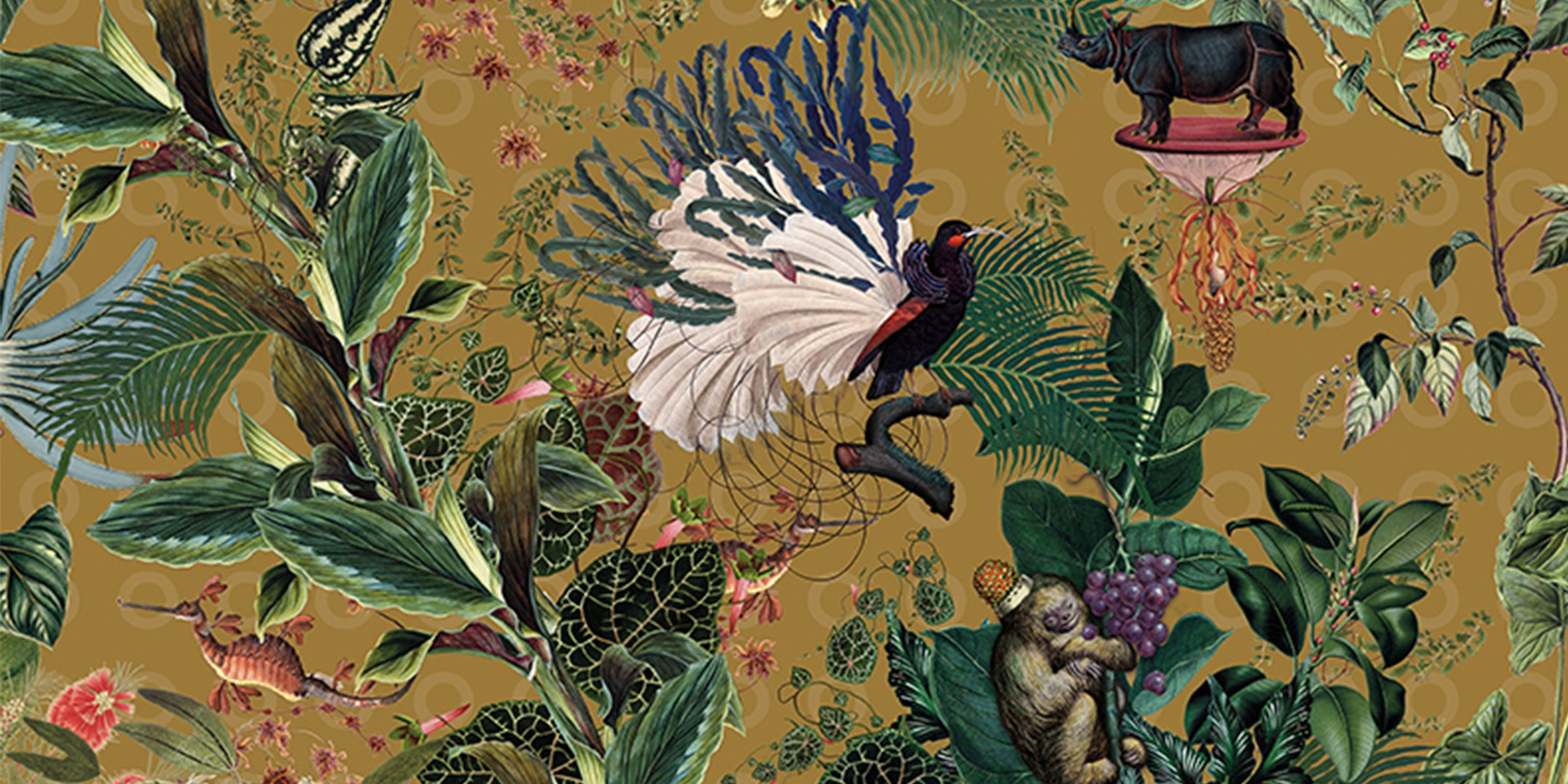 A fantastic fauna print ? digitally printed on soft touch textile with a non-woven backing ? in which each of the 10 extinct animals is mysteriously hidden.