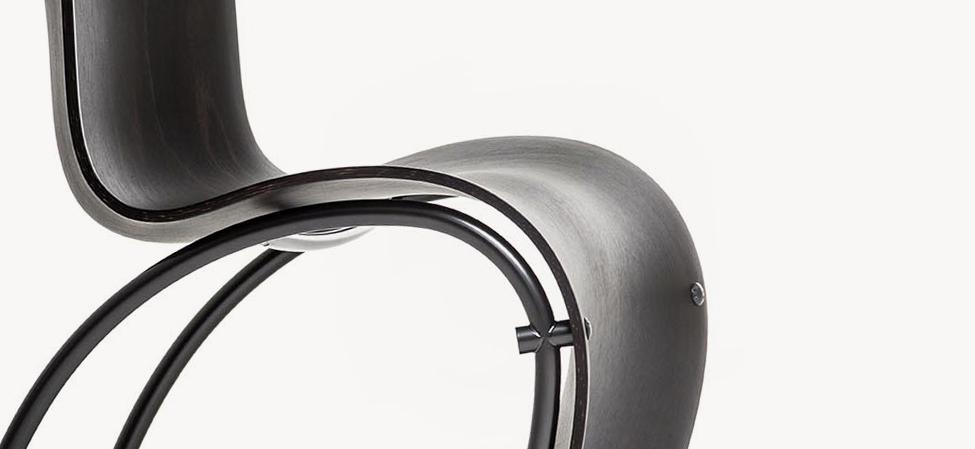 Seduta in faggio curvato multistrato 3D tinto e gambe in acciaio verniciato a polveri.