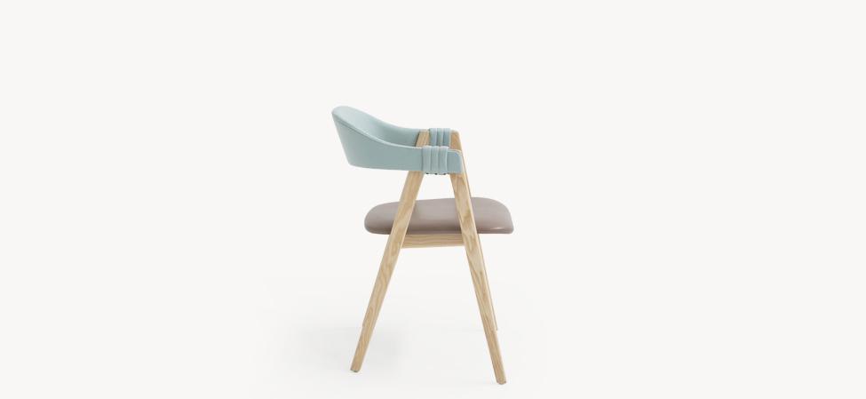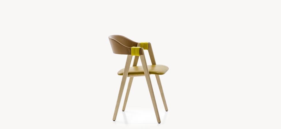 imbottita. Copribraccioli a fascia in pelle o tessuto. Mathilda non è sfoderabile. Sedia impilabile fino a 3 pezzi.