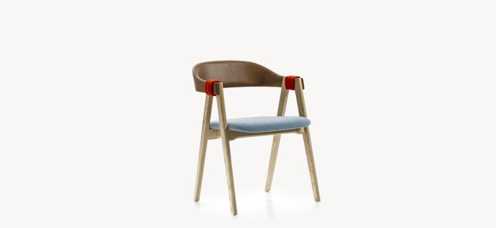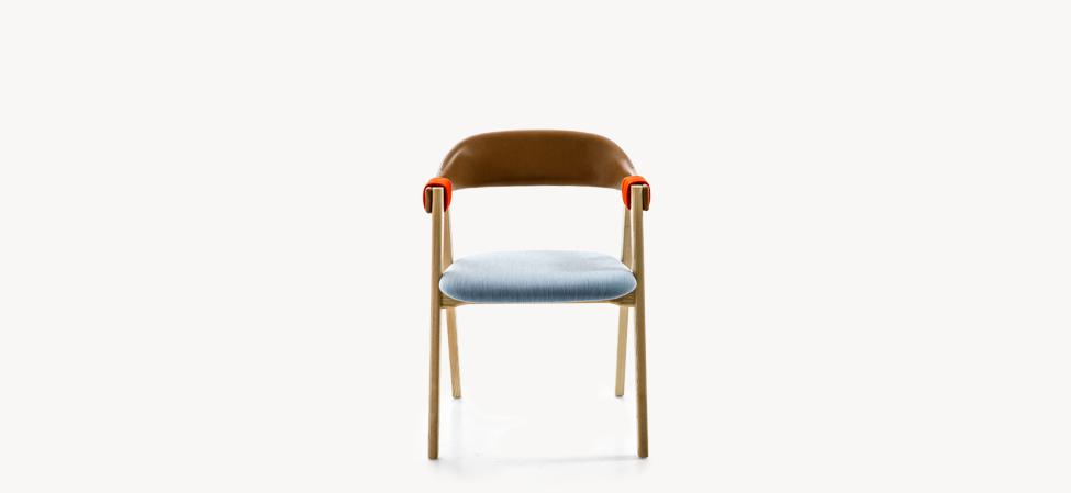 Un oggetto d’uso quotidiano, una forma conosciuta acquisita dalla memoria collettiva, della quale porta l’aspetto familiare, la traccia di una correlazione. Mathilda è un progetto moderno in senso architettonico, nel rapporto proporzionale tra l’insieme e il dettaglio. L’idea è semplice, perfetta per la funzione alla quale è riservata: due cavalletti conferiscono solidità e appartenenza, sorreggono la seduta prestandosi contemporaneamente come sostegni per lo schienale e come supporto impilabile. L’intuizione, ponderata e sobria, riporta il progetto nel contemporaneo, nella possibilità di evolvere verso un sistema di sedute coerente, funzionale e riconoscibile.