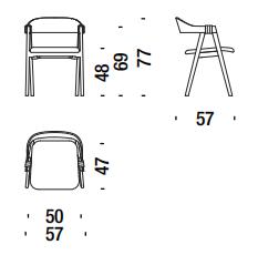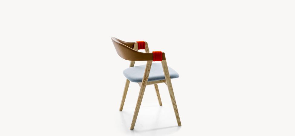 Struttura in frassino o rovere. Seduta e schienale imbottiti con poliuretano espanso ignifugo a densità differenziate. Disponibile la versione con schienale “impagliato” e seduta