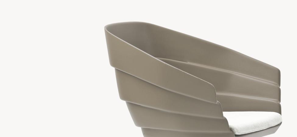 Scocca in poliuretano integrale strutturale e basamento cantilever in acciaio verniciato. La sedia cantilever è impilabile fino a 4 unità.