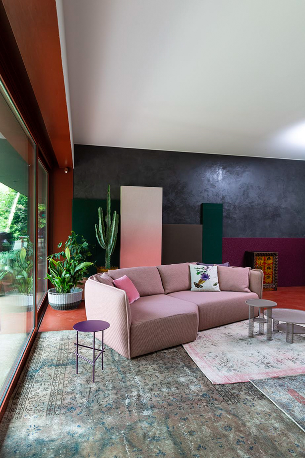 Attraverso cinque moduli, diversi per estensione e profondità, e un solo raccordo è possibile immaginare una molteplicità di combinazioni, dal semplice accostamento speculare alle sequenze geometriche più articolate. Il segno è forte, riconoscibile nei riferimenti alla destrutturazione operata con Lowland (2000) e al sofisticato disegno di Redondo (2010) o di M.a.s.s.a.s (2012). Il termine “chamfer” rimanda al dettaglio architettonico dell’“angolo smussato”. Da qui deriva la forma in pianta del divano, che caratterizza tutti gli elementi del sistema di sedute. Versatili, flessibili, sontuosi, questi divani ci accolgono in un grande ed elegante abbraccio.