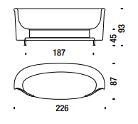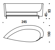 Elementi in poliuretano espanso indeformabile a densità differenziate e fibra poliestere con struttura interna in legno. Piedi in alluminio lucidato avvitati alla struttura. Il cuscino della seduta è in poliuretano espanso indeformabile a densità differenziata e fibra poliestere. I cuscini opzionali dello schienale sono in piuma d’oca. La collezione NewTone non è sfoderabile.