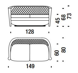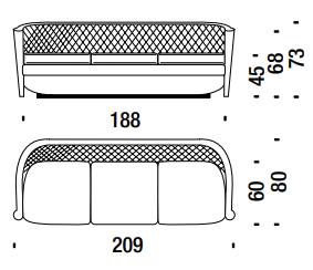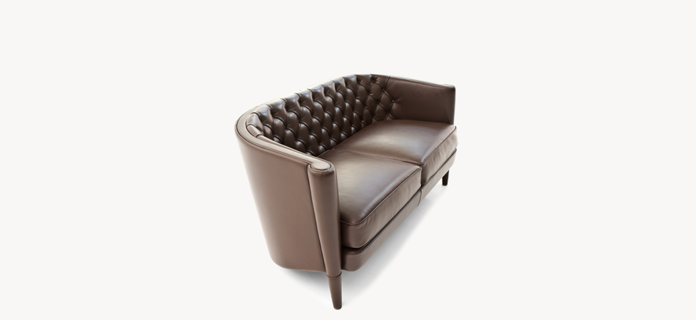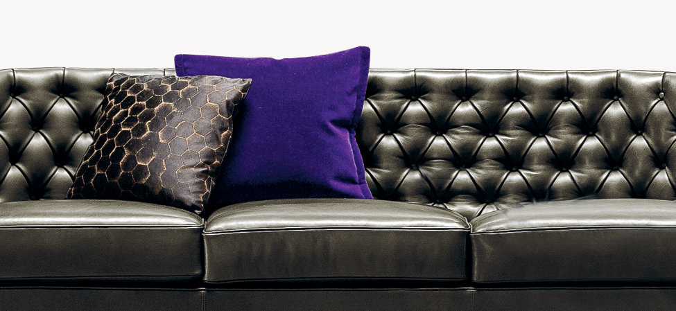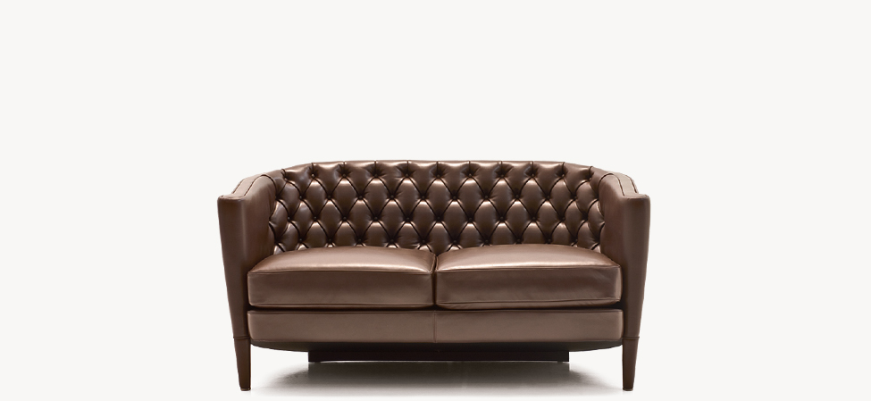 Poliuretano espanso indeformabile a densità differenziate e fibra poliestere con struttura interna in legno. I piedi anteriori del divano e della poltroncina sono rivestiti in pelle o tessuto, mentre il sostegno posteriore, fissato alla struttura, è in faggio. Sottopiedi in acciaio brunito. Piedi della sedia in faggio verniciato. Disponibile versione con cuscini in poliuretano espanso e fibra poliestere (cod. RI0) e schienale in capitonné. La collezione Rich non è sfoderabile, ad eccezione dei cuscini della versione RI0.