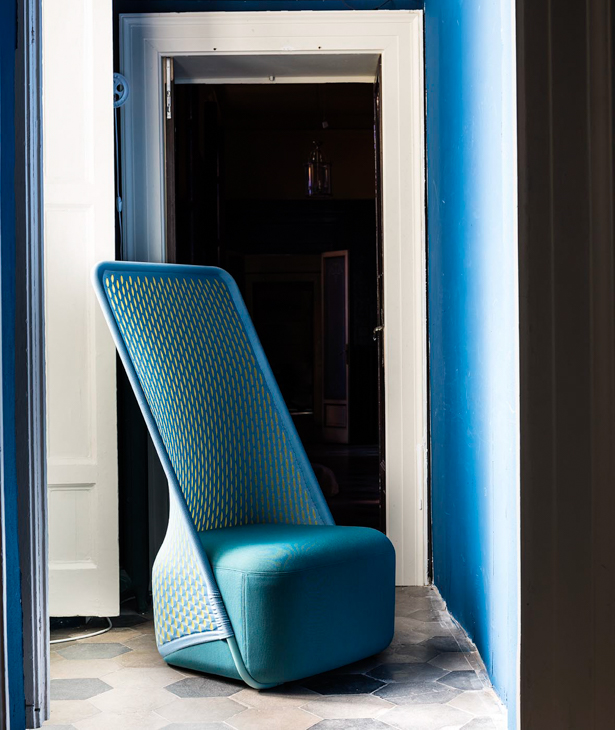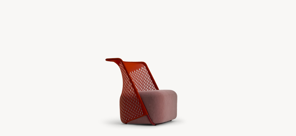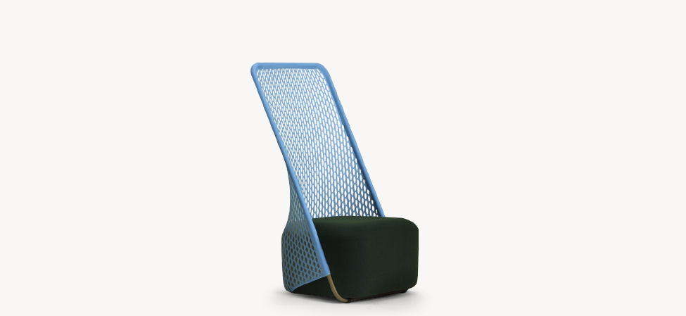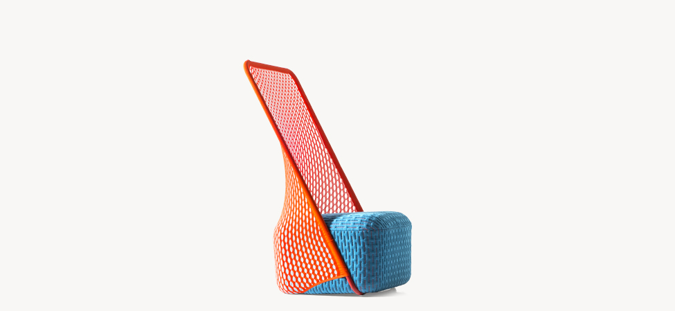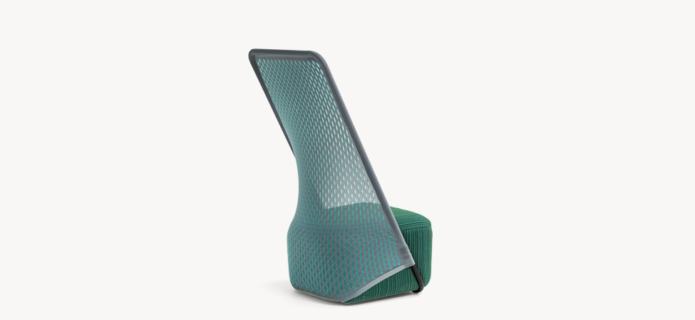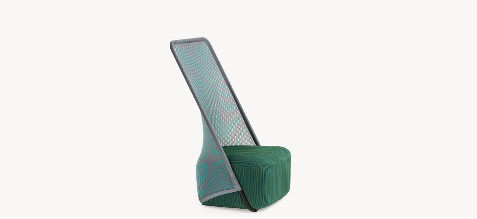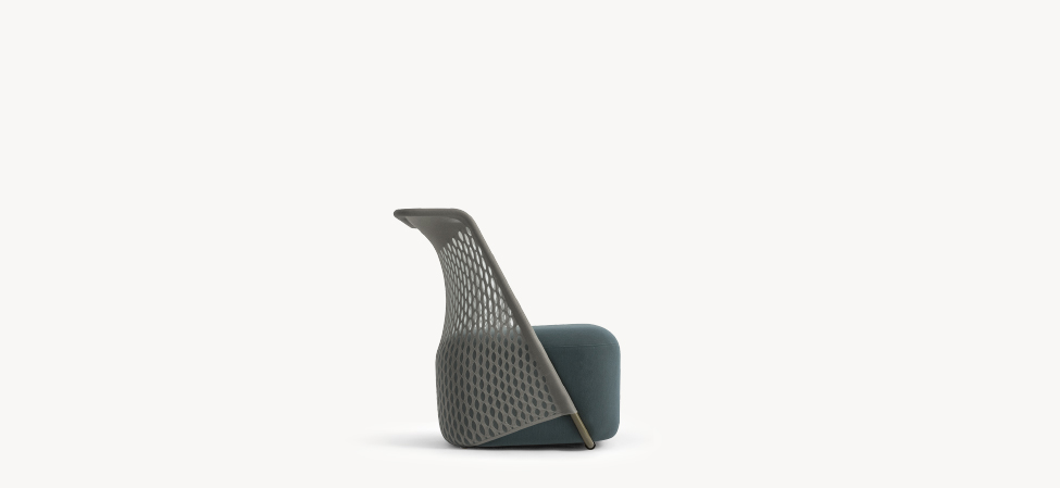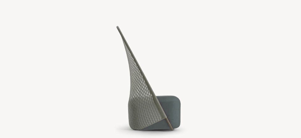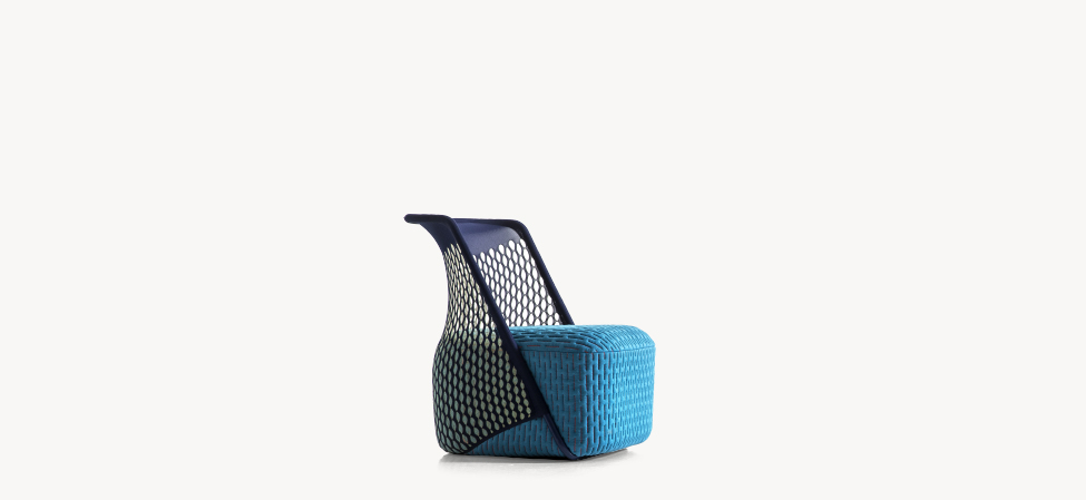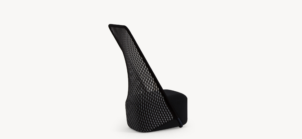 La poltrona nasce dallo studio del design industriale ispirato ai materiali e orientato al processo, nonché dalla ricerca sulla costruzione dei materiali in rete e dallo studio delle relazioni tra i componenti delle sedute tradizionali.‘Cradle’ si avvale di un motivo provvisto di tagli, realizzato appositamente, che conferisce a un tessuto non elastico una valenza tridimensionale. Questo fa si che si realizzi una giusta tensione per sostenere il corpo in modo confortevole e riducendo, sia visivamente che fisicamente, il peso del prodotto.