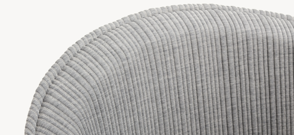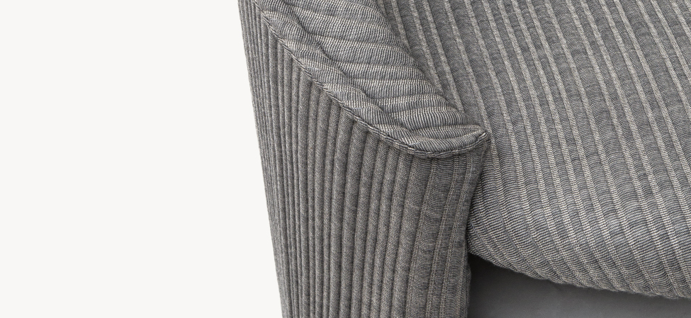 Espanso schiumato a freddo ignifugo con struttura interna in acciaio e legno, piedi in PVC. La collezione Husk non è sfoderabile.