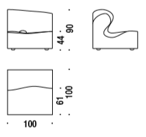 Elementi dai volumi plastici per un sistema di sedute scultoree ma di grande comfort. Gli elementi sono in espanso schiumato a freddo ignifugo con struttura interna in acciaio. Piedi in polipropilene nero avvitati alla struttura. La collezione viene prodotta, per la particolarità delle forme, solo in panno di lana Divina by Kvadrat. La collezione Misfits non è sfoderabile.