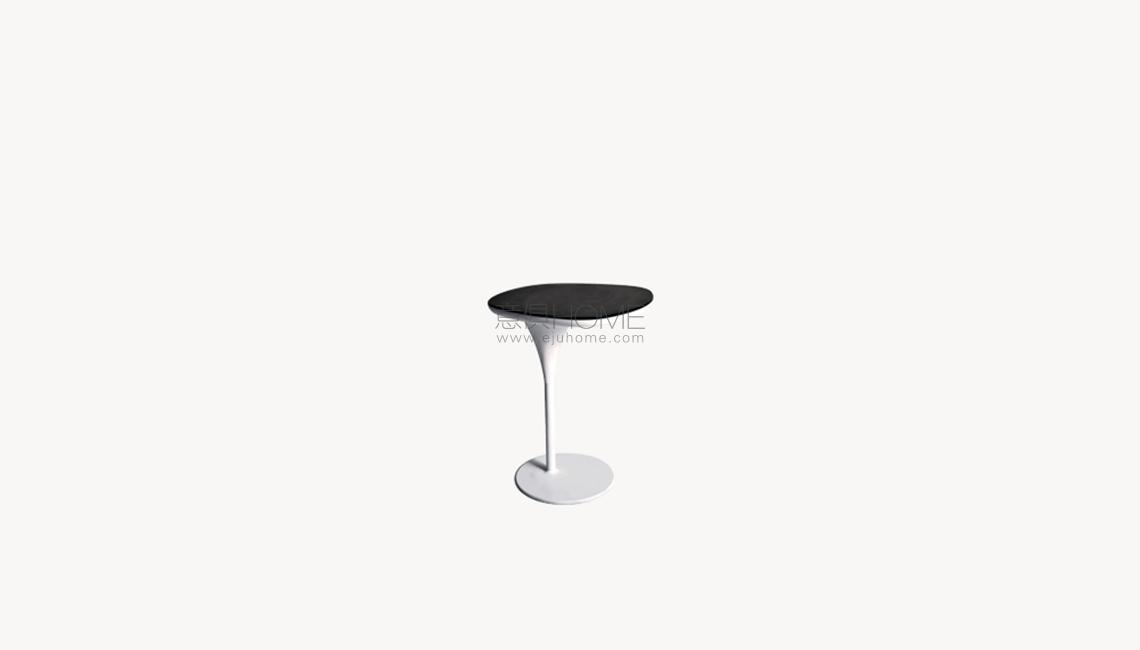 Base in acciaio verniciato bianco o nero, guscio in ABS stampato bianco o nero e piano in Laminam?. Il piano non è intercambiabile.