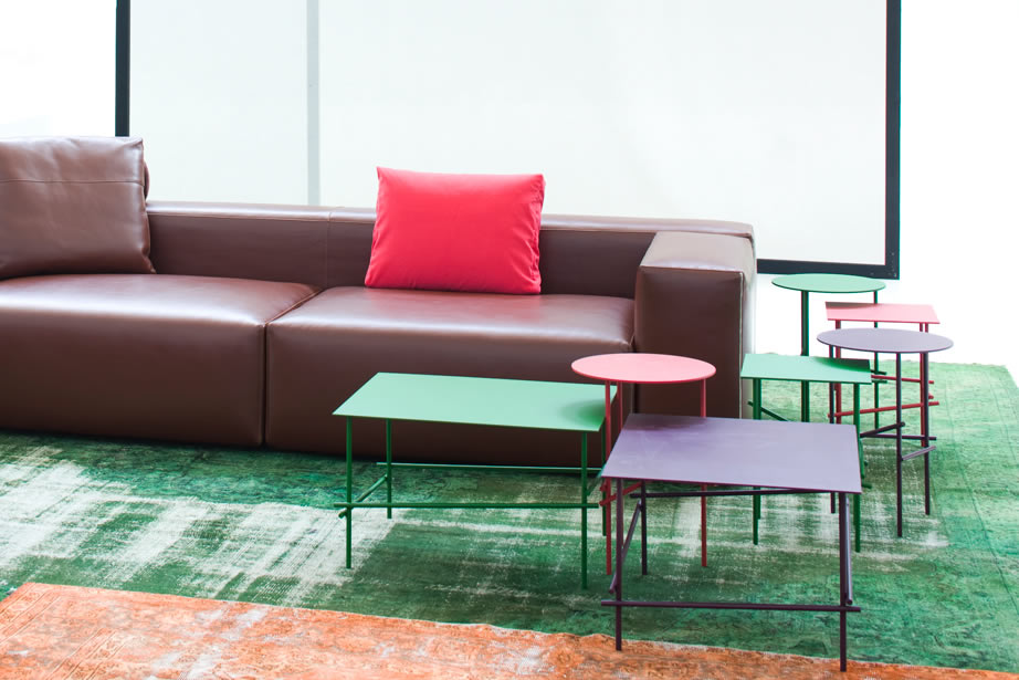 Raffinato e rassicurante, lusso understatement dal sapore vagamente orientale. Semplice e minimal in posizione normale; di grande comodità quando lo schienale, dotato di meccanismo d’inclinazione, si alza. Il nome – Shanghai – richiama i bastoncini di legno colorato del gioco, trasposti nel progetto nei tubi di acciaio verniciato dei piedi del divano e delle gambe dei tavolini. La comodità è un elemento intrinseco, enfatizzata dalla presenza di cuscini in piuma d’oca rivestiti con tessuti a colori neutri e puri, ai quali fanno da contrappunto le macchie di colore dei cuscini decorativi e dei tavolini laccati prugna, verde smeraldo, paprica e rosso lacca.