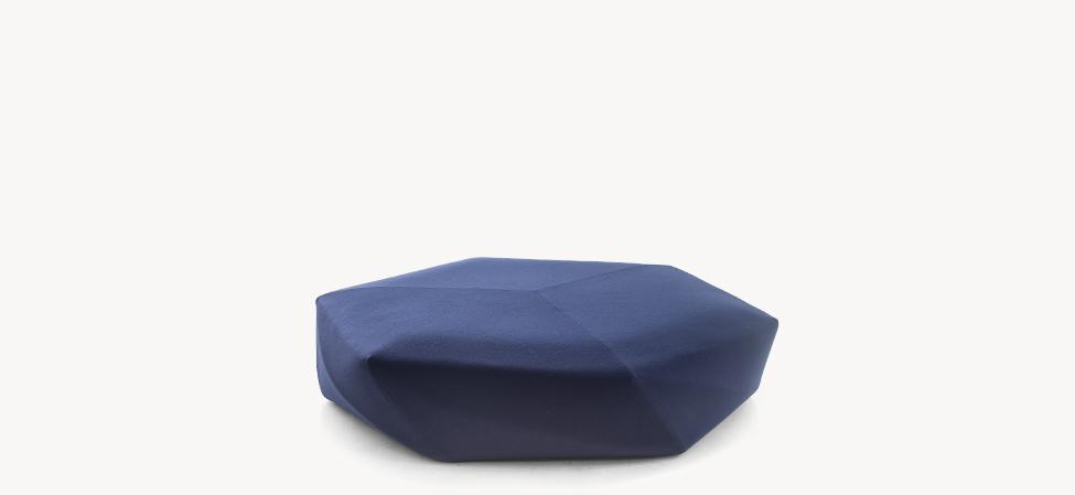 Disegnato originariamente per il nuovo flagship store di Issey Miyake, in Brook Street nel centro di Mayfair a Londra, Brook è un ottomano imbottito dal profilo sfaccettato dove i tagli, progettati in funzione del rivestimento tessile, evocano il ricordo delle pietre preziose. Nelle sedute, però, non c’è rifrazione, non c’è luce. Il nome, oltre a riferirsi all’indirizzo del negozio londinese, suggerisce l’immagine di un ruscello (brook) evocando l’idea di un sasso di fiume, modellato e sagomato dall’azione dell’acqua. Una raffinata simmetria derivata dalla contemplazione della natura, e dall’integrazione delle sue leggi nell’atto stesso del progetto.
