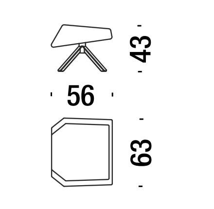 Struttura in resina rivestita in espanso ignifugo. Basamento fisso in acciaio verniciato.