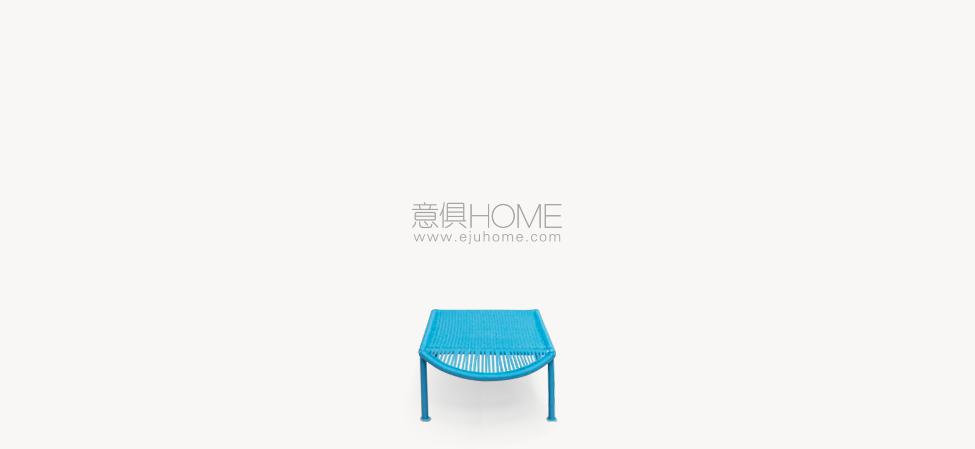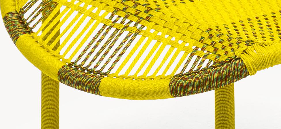 Struttura in acciaio verniciato e fili colorati in polietilene intrecciati a mano. Sottopiedi in PVC.