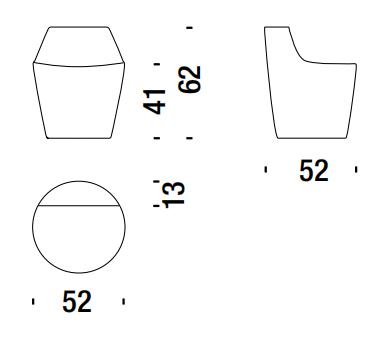 Espanso schiumato a freddo ignifugo con struttura interna in legno per i pouf e con struttura interna in acciaio per le poltroncine. Basamento in acciaio verniciato per la poltroncina girevole (cod. 0V8). è fortemente consigliato il rivestimento in panno di lana o feltro. La collezione Saruyama island non è sfoderabile.