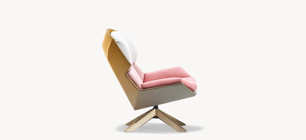 Una seduta e il suo doppio: da un lato contiene e protegge, dall’altro distende e accoglie. Una vistosa ambivalenza che separa artificiosamente forma e contenuto, immagine e concetto, che non a caso suggerisce con il nome – hood, cappuccio – una doppia funzione. Il cappuccio è un simbolo antico e contemporaneamente urbano; protegge e incornicia il viso ma può nascondere, negare il dialogo e il confronto. L’impatto è forte, tutto giocato sul filo del contrasto: le tre dimensioni sembrano recitare la geometria bidimensionale del disegno, la sovrapposizione cromatica non divide ma complementa, la tensione non viene sopita ma stabilizzata. Clarissa è poltrona relax dinamica, pronta allo scatto ma disposta al riposo, alla sospensione temporanea delle attività. Una combinazione di agonismo e collaborazione, di provocazione ed estetica.