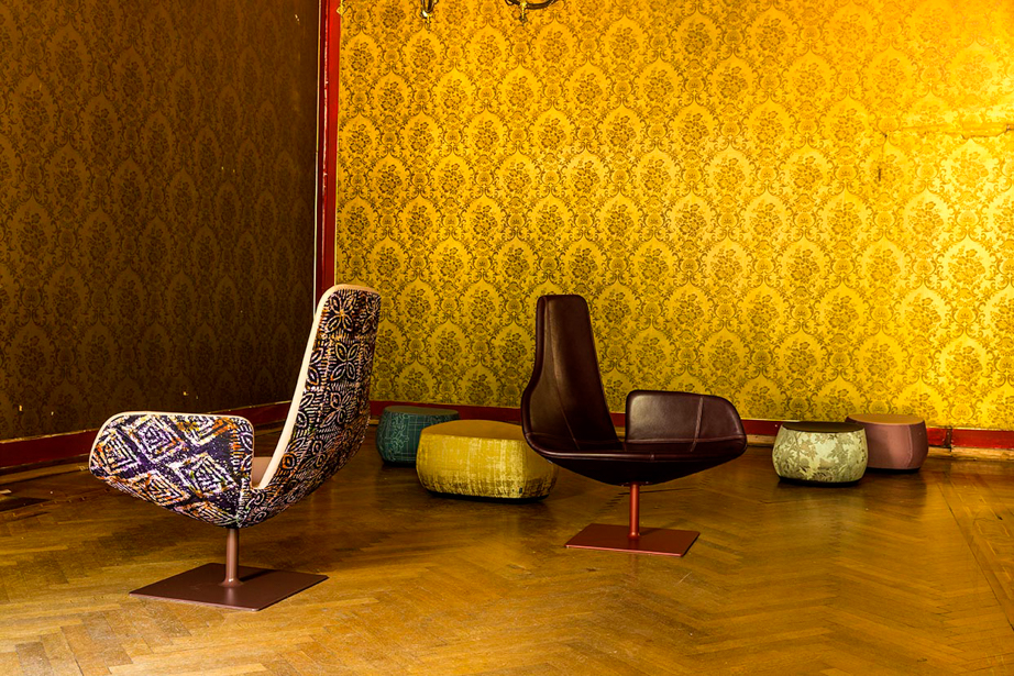 Da un frammento di conchiglia, rotto, levigato dalle onde, Patricia Urquiola disegna una collezione di sedute pensate per la casa e per gli spazi pubblici. L’influenza scandinava, evocata dal nome stesso, è nel riferimento ad Arne Jacobsen e nella presenza di un taglio allungato, metafora delle insenature delle coste nordiche. Come in un ciclo naturale la scocca della poltrona, ri-generata dal tempo e dall’acqua, diventa poltroncina e poi ancora sgabello. La forma spezzata, da concetto astratto, si trasforma in oggetto di design: linee dolci che sostengono e accolgono, evidenziate dall’accuratezza delle cuciture a vista in armonia continua con l’essenzialità della struttura.