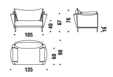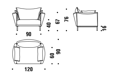 Espanso schiumato a freddo ignifugo e fibra poliestere con struttura interna in acciaio. Piedi a ponte in tubo di acciaio cromato o verniciato a polveri. I cuscini dello schienale, del bracciolo e quelli opzionali sono in piuma d’oca. La collezione Gentry è sfoderabile.