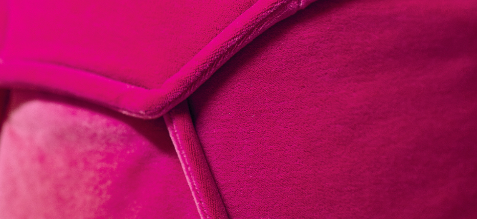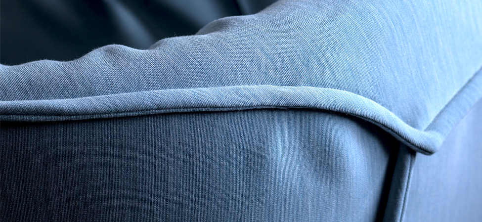 Blocchi smussati dal taglio di una lama immaginaria. L’ordine geometrico è rotto, travolto a favore di un movimento, di un margine che attraversa i perimetri. Le facce rendono evidente la nervatura; alcune cuciture, evidenti come imbastiture, la disegnano, altre scompaiono. L’utilizzo è libero, la superficie morbida. La forma esterna, dal punto di vista dei volumi, appare indipendente dalla struttura e dall’imbottitura interna. Divano, poltrona, poltroncina: un sistema componibile dove ogni elemento mantiene indipendente il carattere, per funzione e presenza scultorea.