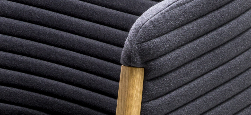 Espanso schiumato a freddo ignifugo con struttura interna in acciaio. Basamento in rovere. Mafalda non è sfoderabile. Disponibili due versioni di rivestimento: