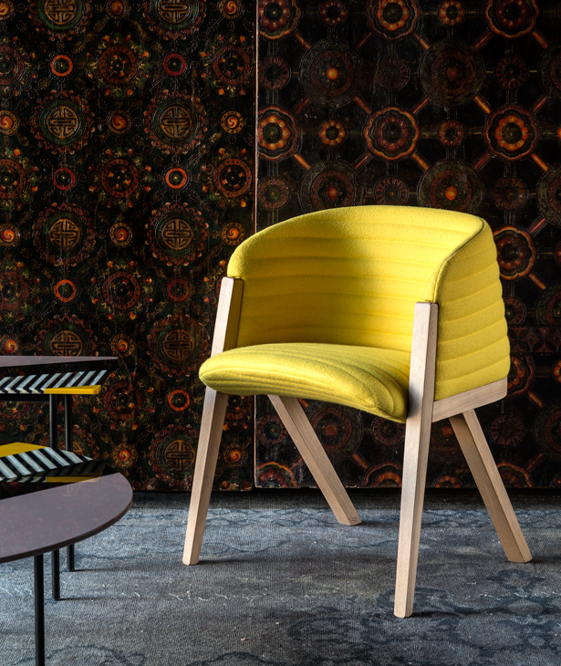 Leggera, accogliente per forma e portamento, Mafalda integra in un corpo solo tre elementi distinti concettualmente incastrati tra loro – la base in legno, la seduta e la scocca. L’esito è una figura singolare, per certi versi spiritosa. Il nome, richiamo al personaggio dei fumetti celebre per il carattere estroverso e per il linguaggio diretto, non rappresenta un’analogia azzardata. Nella sua spontaneità la seduta esprime, con sottile leggerezza, l’idea di un progetto immaginato nella logica del ciclo di vita del prodotto. Mafalda…”ha 6 anni ma si interessa dei problemi del mondo”…