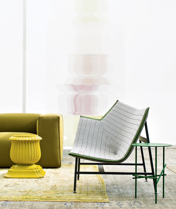 Una scultura funzionale, una seduta da lettura avvolgente e confortevole, resistente ma nel contempo leggera, sospesa come a sconfiggere la gravità. Paper Planes nasce dalla progettazione di un tessuto ispirato alla carta millimetrata: una forma derivata dal piegare e appuntire la carta esplorando forme e strutture, producendo angoli, linee e poligoni. L’apparente semplicità richiede però una magistrale abilità sartoriale. Durante la fase di imbastitura le righe del decoro, data la particolarità geometrica della seduta, impongono una perfetta convergenza, non lasciando al maestro artigiano il minimo margine d’errore.