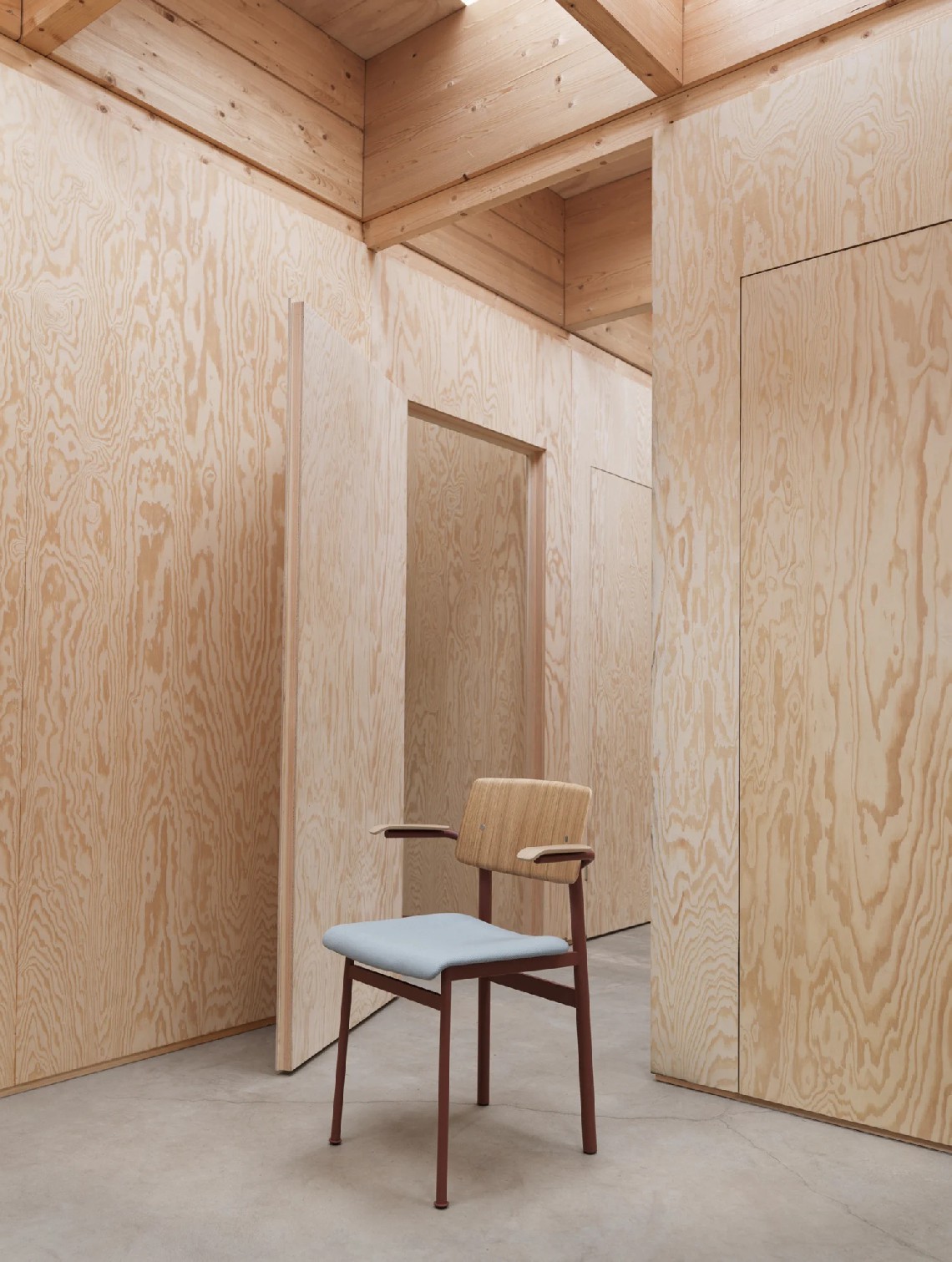 Loft Chair exemplifies honest, simple design thanks to an expression inspired by industrial design. The design features contrasting materials with its frame in powder coated steel that is offset by the soft plywood on seat and back, molded to embrace the user's body.