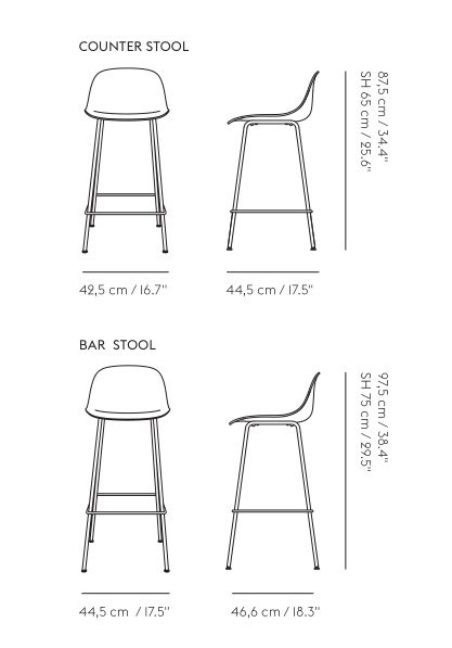 With an expression that is at once comfortable and harmonious, the Fiber Bar Stool is a design with an unobtrusive yet distinct identity. With its shell made in an innovative composite of plastic and wood fibers, the Fiber Bar Stool has a textured, matte surface and soft, inviting touch, paired with its embracing seat. Designed in two different heights, both available with or without backrest, the Fiber Bar Stool encapsulates the ideals of simply modern design with a human touch. When viewed from afar, the wood fibers of its shell blend into the surface for a matte finish yet appear when viewed up-close for a modern sentiment, joined by a wooden base.