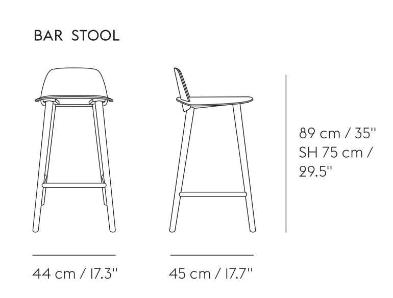 The Nerd Bar Stool is designed with a playfully contemporary expression, joined by its wooden Scandinavian materiality. The seamless integration of its back and seat makes for a characterful detail alongside the curved edges of its seat.