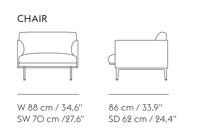 The Outline Series adds new perspectives to the classic Scandinavian design sofas of the 1960's, marrying the ideals of simplicity and function into one. With the design taking its name from its strong outline of a sofa, the Outline Series is clean and elegant on the outside with a deep seat and soft cushioning on its inside. The Outline Series has an expression that is at once elegant yet timeless, elevated by its lines referencing architectural shapes alongside its curved armrests, giving the design a distinct appearance across various sizes and variants. The Outline Series also includes Studio versions of the Sofa and Chair, being compact versions with slimmed-down proportions for smaller spaces within the home, hotel rooms, work settings and more. The Outline Studio Sofa and Chair have a smaller depth of 76 cm / 29.9”.