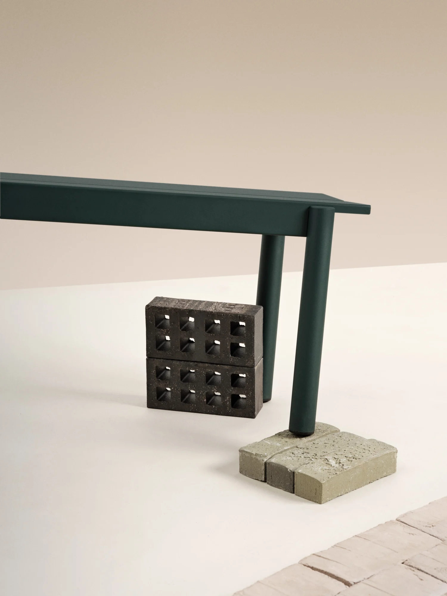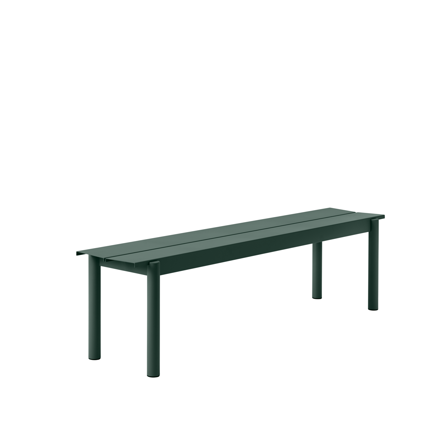 The Linear Steel Bench brings new perspectives to modern outdoor furniture through its straight lines alongside the folded edges, halfcircular intersecting legs and small spacing for easy removal of water. Kept visually clean for long-lasting aesthetics, the Linear Steel Bench finds its distinct character through subtle detailing and a simple expression, allowing for it to complement any outdoor setting. The Linear Steel Bench is designed in proportions that allow for it to slide easily under the matching Linear Steel Table