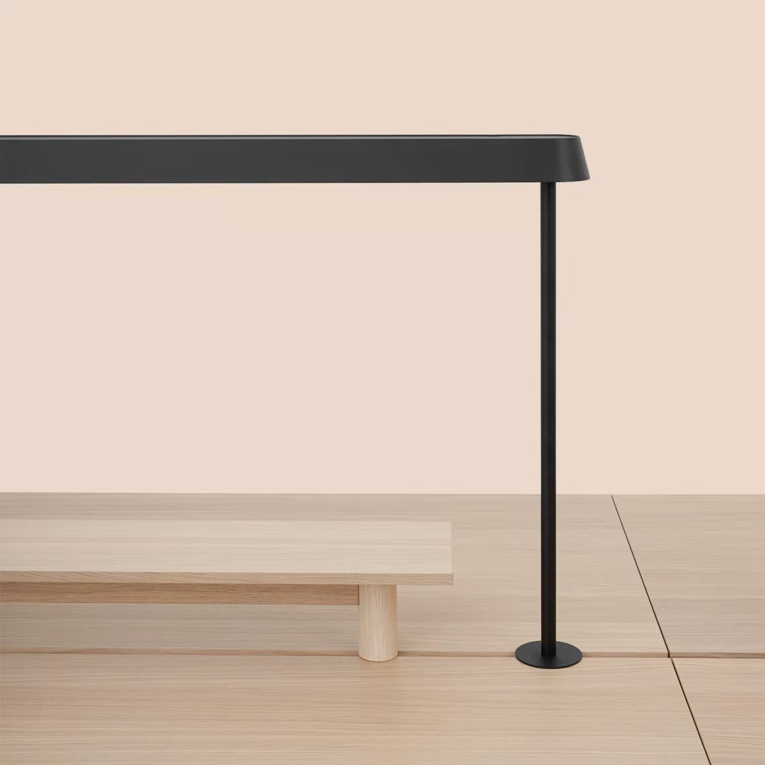 The Linear Mounted Lamp brings an elegant expression and subtle details to any space. Designed with inherent functionality through its dimmable light source, the Linear Table Lamp hints towards the archetypal library lamp through its familiar form, joined by a friendly character that allows for it to be used in any setting. Note that the Linear Mounted Lamp must be used on either of the Linear System Table designs.