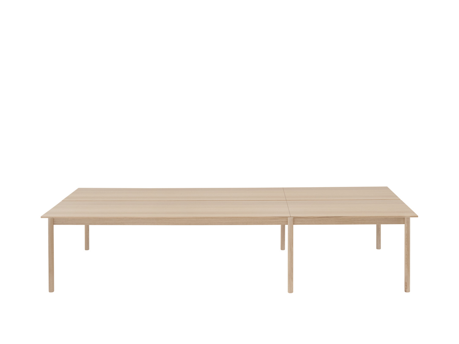 The Linear System Table is a simple yet refined table with subtle details and references to the Scandinavian design heritage. Its legs are cut into half-circles and joined with the table for a light expression while the slender overhang at both ends of the table makes for a refined expression. The Linear System Table is available as a freestanding table to be used on its own, as predesigned configurations or as Middle and End Modules that can be configured to the exact needs of your space.