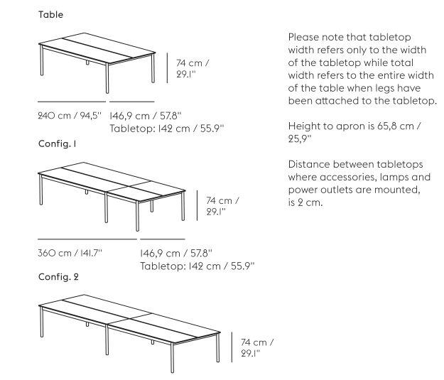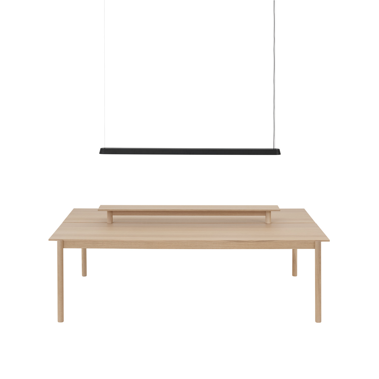 The Linear System Table is a simple yet refined table with subtle details and references to the Scandinavian design heritage. Its legs are cut into half-circles and joined with the table for a light expression while the slender overhang at both ends of the table makes for a refined expression. The Linear System Table is available as a freestanding table to be used on its own, as predesigned configurations or as Middle and End Modules that can be configured to the exact needs of your space.