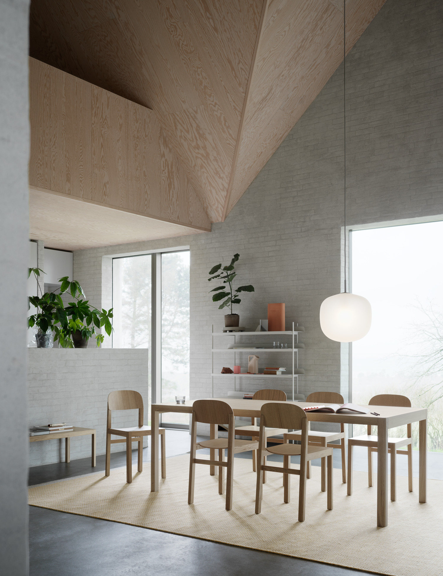 The Workshop Table joins together the ideals of Scandinavian craftsmanship and subtle detailing for a deliberately simple and archetypal expression. With its tabletop in either oak veneer or linoleum harmoniously carving itself into the solid oak frame, the Workshop Table brings a refined and understated appearance to any setting.