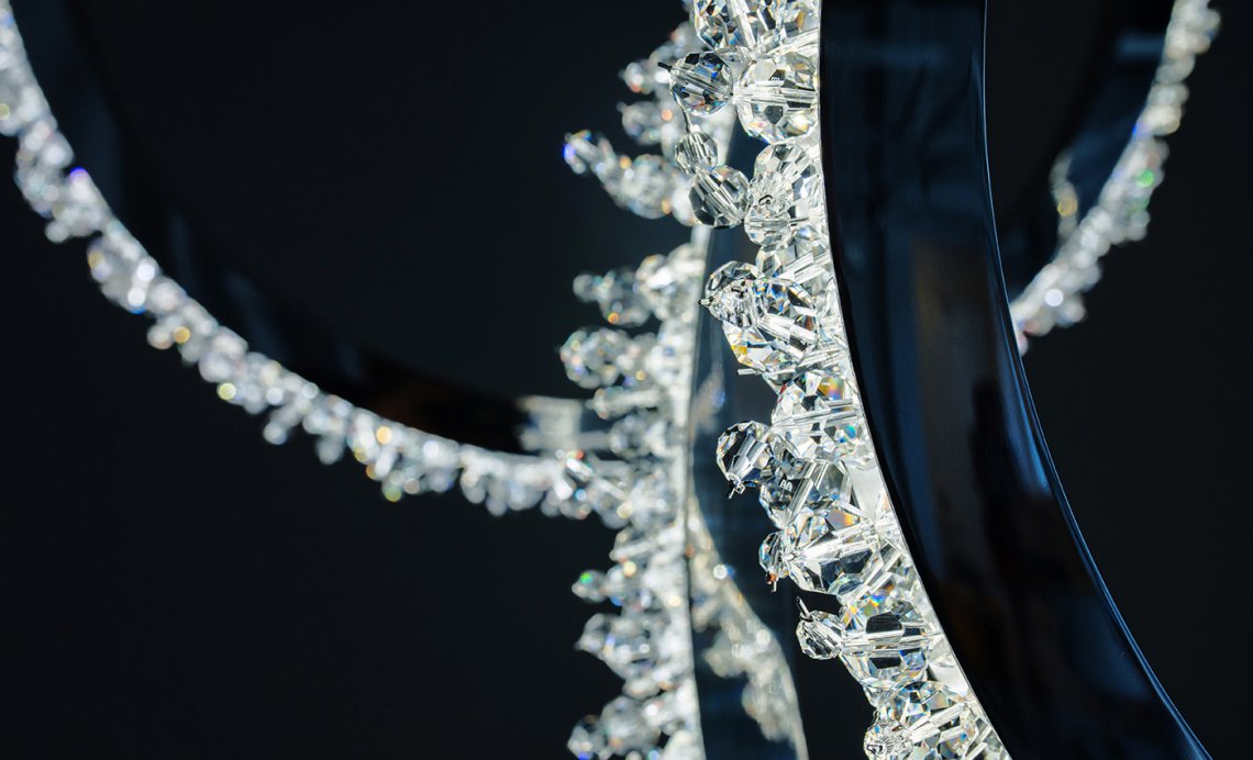 HALO 的設(shè)計(jì)旨在通過使用最少的物質(zhì)來保持明顯的通風(fēng),而不會(huì)影響質(zhì)量或呈現(xiàn)的效果。這件獨(dú)特的作品讓我們想起了光可以創(chuàng)造的卓越能力和現(xiàn)象。每一顆水晶都被精心組裝成細(xì)小的樹枝,像被霜覆蓋的光束一樣冒出來,將光線折射成成千上萬的火花。