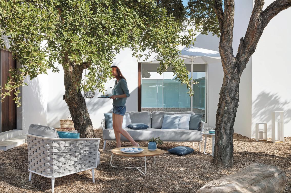 Mood chairs designed by Stephane De Winter and Mood coffee- and loungetables designed by Gerd Couckhuyt. Mood is a lightweight and durable collection of resin wicker furniture. Designed with translucence in mind, the chairs are available as high or low units. This collection also includes side tables in different sizes and finishes.