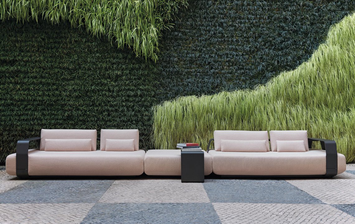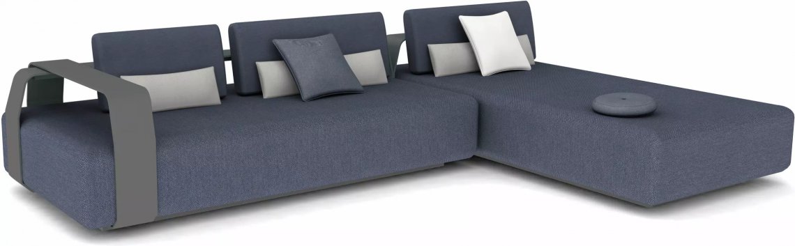 Kumo is a light and playful contemporary seating island with pouf. Japanese for cloud, Kumo invites you to create your personalised outdoor cocoon. It comes in different shapes and sizes. The movable armrests and back supports are easily adjusted to create either a comfortable sofa or stylish lounger, a luxurious lounge chair or a relaxing footrest.