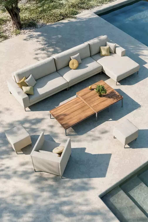 A sleek frame, sophisticated upholstery fabrics, exceptional seating comfort and endless combination possibilities are only a few features of Zendo Sense, a new take on a timeless Manutti icon. Carefully selected materials are crafted into durable, weatherproof pieces that emanate luxury and show no distinction between interior and exterior design. Offering modular and freestanding sofas, club sofas, daybeds and coffee tables, the versatility of Zendo Sense makes it the perfect fit for settings of all shapes and sizes : from int