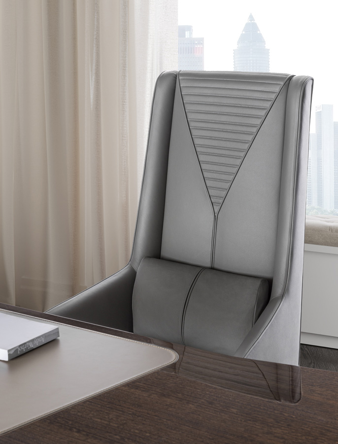 Upholstered swivel armchair. Upholstery fabric or leather.