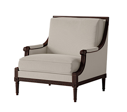 Armchair. Solid wood structure completely padded. Base with solid wood sculptures in ebony-coloured polishing.