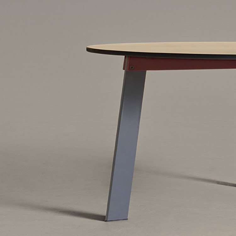 The fulcrum of the project of the Aronte table is the structure, like a Saint Andrew’s cross. The forked design of the extremities of the steel structure permits insertion of the legs, also in steel, with a simple assembly system. This technical detail is also an aesthetic touch, enhanced by the bolts and the refined color combinations.