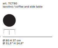 The Cot tables have been created to interact with the Riquadra seating collection, from which they inherit the cross–section of the leg and its relationship with the top. Envisioned in two sizes, 60 and 80 cm, they have tops in marble or wood. The circular tops, with rounded lower borders, are fitted to the particular cross–section of the legs in solid ash wood. The structure is enhanced and reinforced by the characteristic central three–way joint.