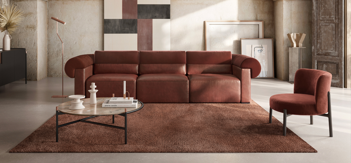 在與Natuzzi的首次產品設計合作中,Fabio Novembre創造出了New Classic沙發,這套組裝式軟裝從最經典的Chester沙發中汲取靈感,以都市/現代基調重新詮釋。以圓形和方形的和諧交匯為設計基調,New Classic沙發交疊結合一系列圓和方,打造出尺寸寬大的沙發,迎接放松時刻。