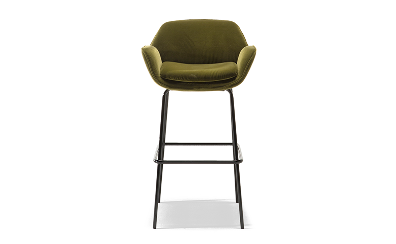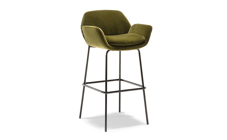 Shield吧臺凳的設計利落而優雅,寬大尺寸帶來舒適坐感。扶手的特別設計巧妙地凸顯出舒適概念,與精美的結構線條形成和諧對照。