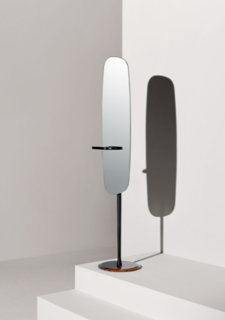 The singularity of this mirror is base don its caring proportions; a hand-made natural walnut shelf combines the softness lines of the mirror.