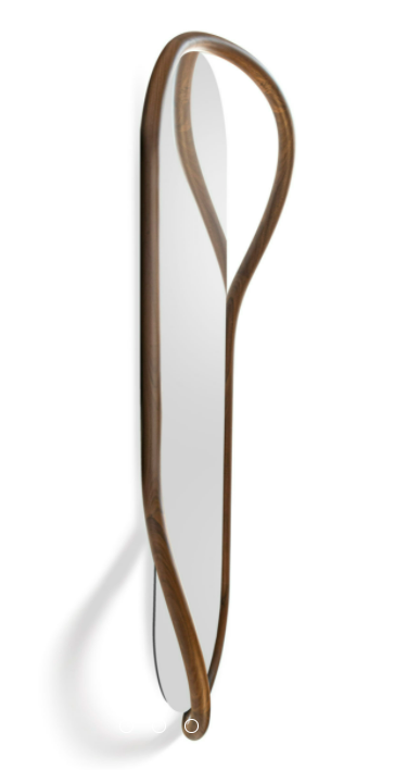 The singularity of this mirror is base don its caring proportions; a hand-made natural walnut shelf combines the softness lines of the mirror.