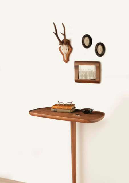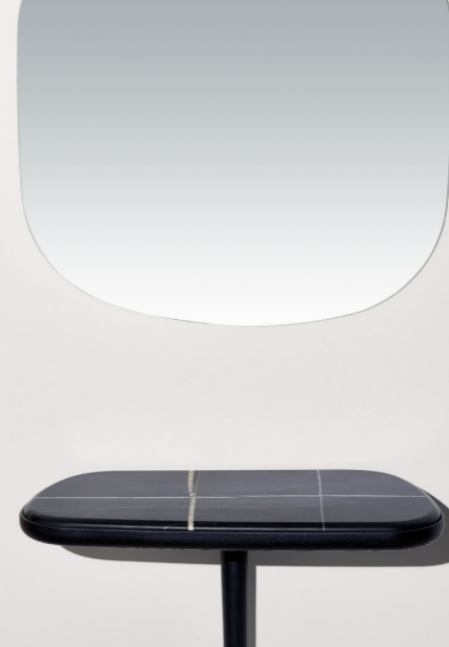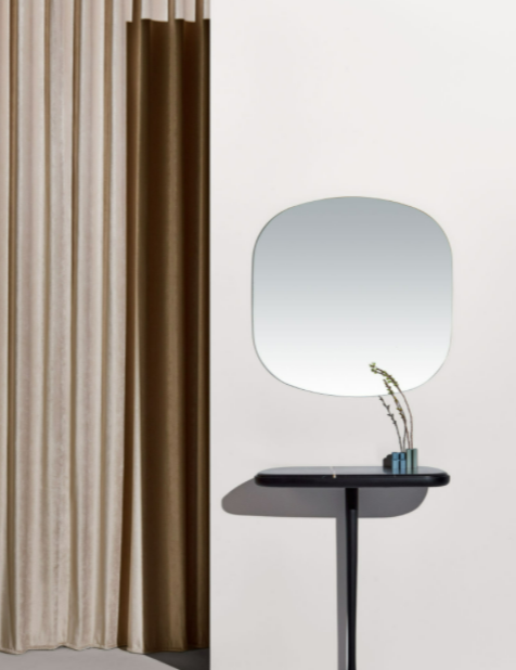 The singularity of this mirror is base don its caring proportions; a hand-made natural walnut shelf combines the softness lines of the mirror.