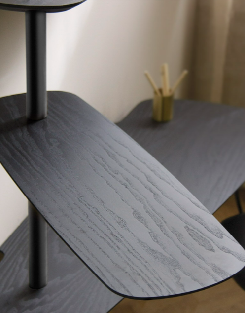 The singularity of this mirror is base don its caring proportions; a hand-made natural walnut shelf combines the softness lines of the mirror.